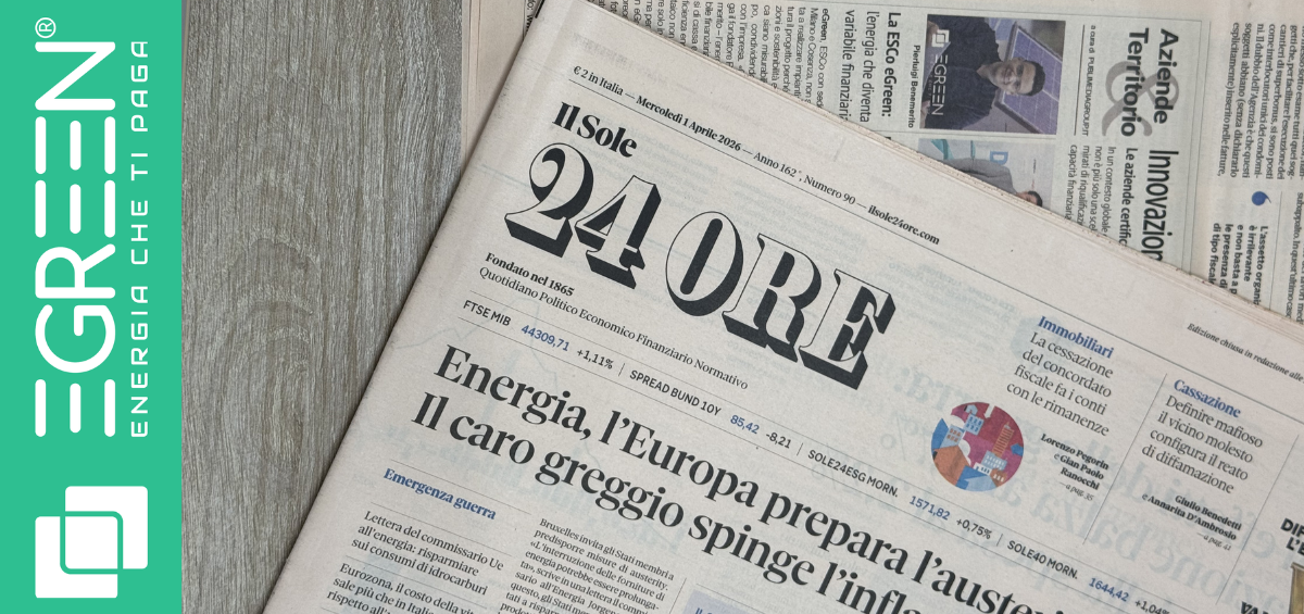 In questi giorni mi è capitato di soffermarmi su un’immagine che, a mio avviso, racconta molto bene il momento storico che stiamo vivendo: da una parte l’articolo uscito su Il Sole 24 Ore che parla di eGreen e del nostro modo di interpretare il settore energetico, dall’altra la prima pagina dello stesso giornale con un titolo che richiama con forza il tema del caro energia, dell’inflazione e degli equilibri internazionali che stanno nuovamente mettendo sotto pressione l’Europa.